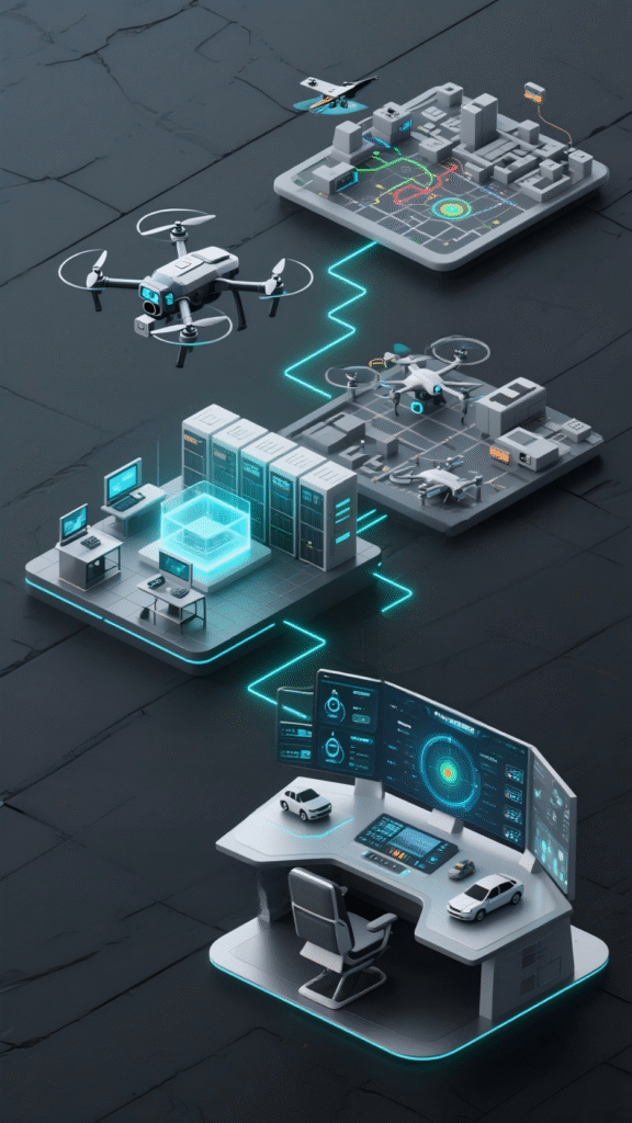 Through a digital control console, it enables fine‑grained management of flight resources (UAVs, vehicles), assets, teams, and data. Combined with digital airspace management (proprietary/restricted airspace) and intelligent mission scheduling, it achieves unified, safe, and efficient dispatch of the entire UAV fleet.